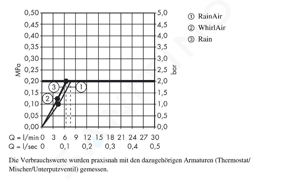 Paramètres techniques type de jet : WhirlAir, Rain, RainAir sélection... Afficher la description complète