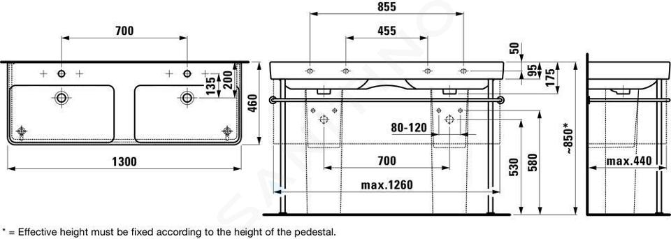Lavabo double avec 2 trous pour robinetterie et trop-plein longueur :... Afficher la description complète