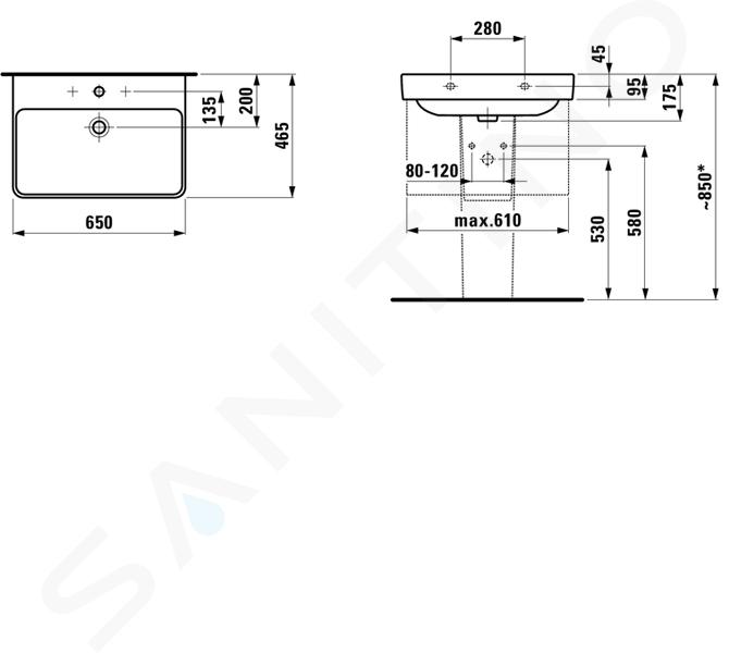 Lavabo avec un trou pour robinetterie, avec trop-plein largeur : 650... Afficher la description complète