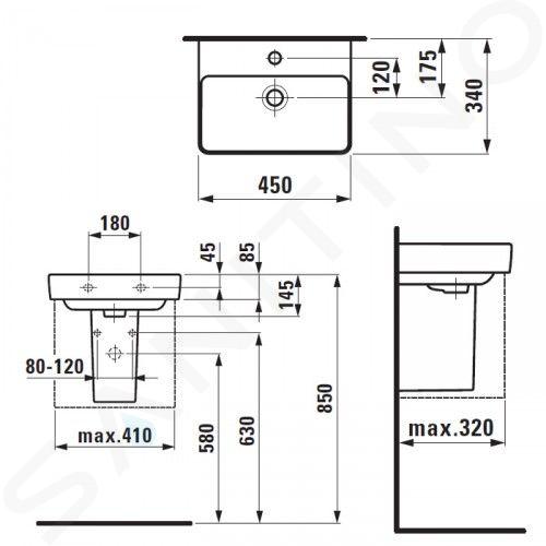 Lave-mains avec un trou pour robinetterie, sans trop-plein largeur :... Afficher la description complète