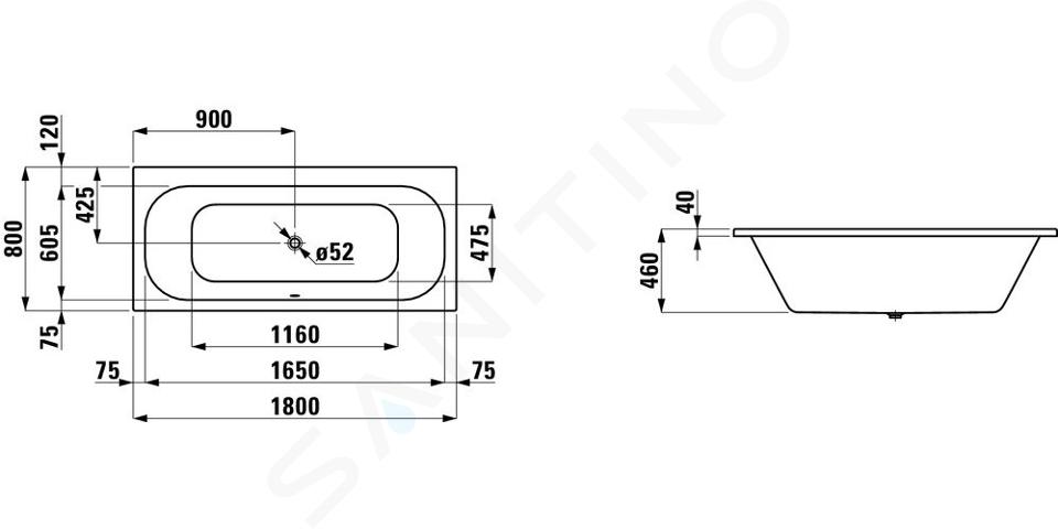 Baignoire, version encastrée longueur : 1.800 mm largeur : 800 mm... Afficher la description complète