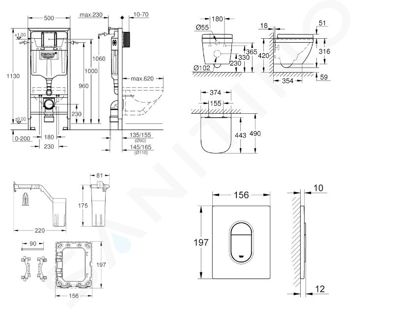 Complete toiletset bevat inbouwmodule Rapid SL wandcloset Euro Ceramic... Volledige omschrijving weergeven.
