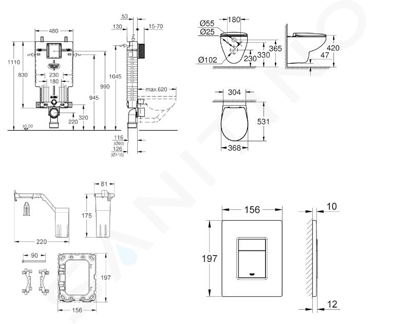 Uniset-module voor WC, spoeltank GD 2