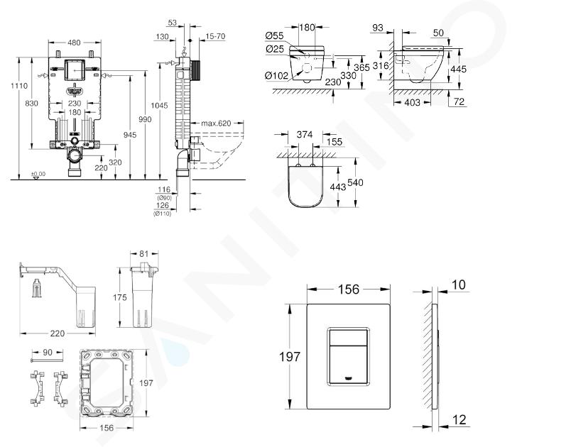 Uniset-module voor WC, spoeltank GD 2