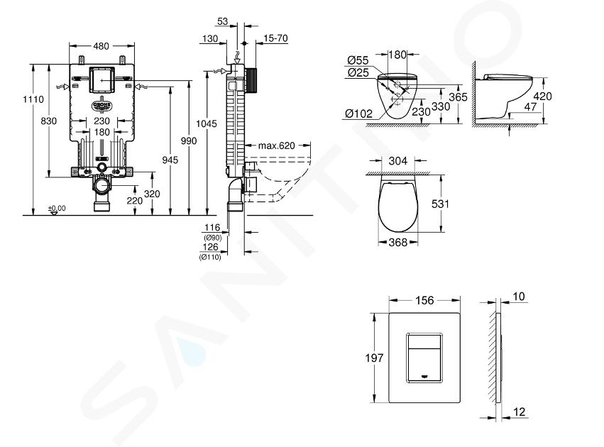 Uniset-module voor WC, spoeltank GD 2