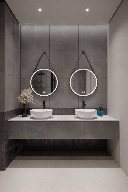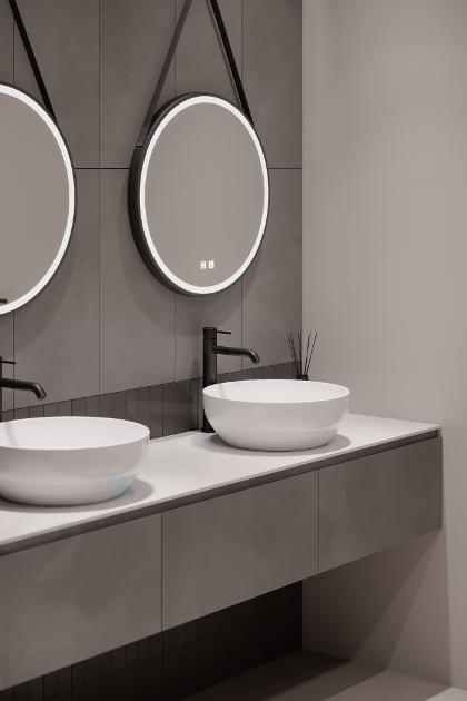 De sanitairkeramiek uit de kielle Idolio-serie is verkrijgbaar in klassiek wit en stijlvol antraciet. In combinatie met het badkamermeubilair – beschikbaar in drie afwerkingen – ontstaat een visueel indrukwekkende sfeer met een sterke focus op functionaliteit. U heeft de keuze uit onderkasten in diverse afmetingen en uitvoeringen, wandkasten, maar ook een losse wastafelplank. De spiegels van kielle Idolio, zowel rond als rechthoekig, zijn uitgerust met LED-verlichting en bieden extra functies zoals een anti-condenssysteem en dimbare verlichting.