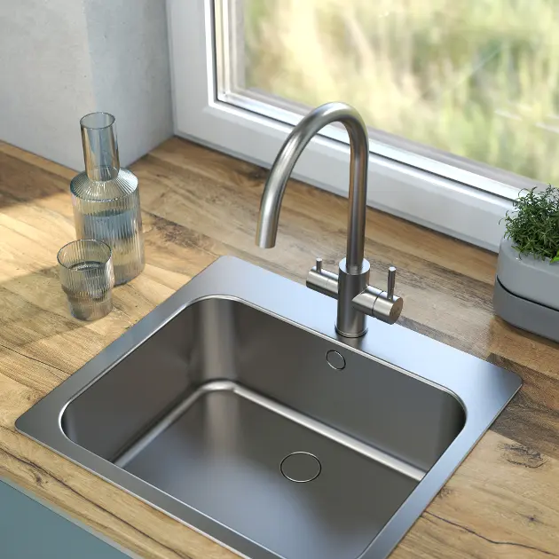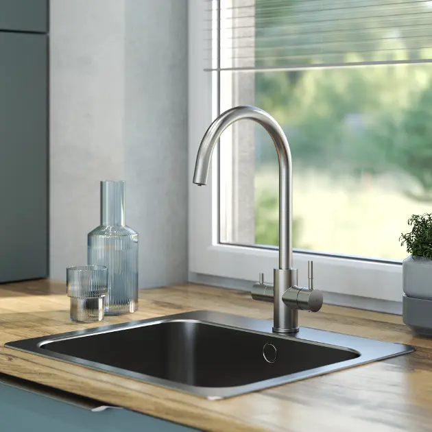 Eéngreeps keukenkraan met filterfunctie uitvoering geborsteld rvs... Volledige omschrijving weergeven.