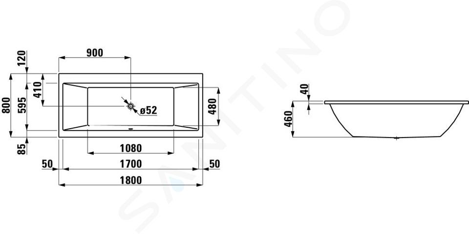 Bad, inbouwversie lengte: 1800 mm breedte: 800 mm hoogte: 460 mm... Volledige omschrijving weergeven.