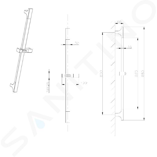 Douchestang met douchehouder
