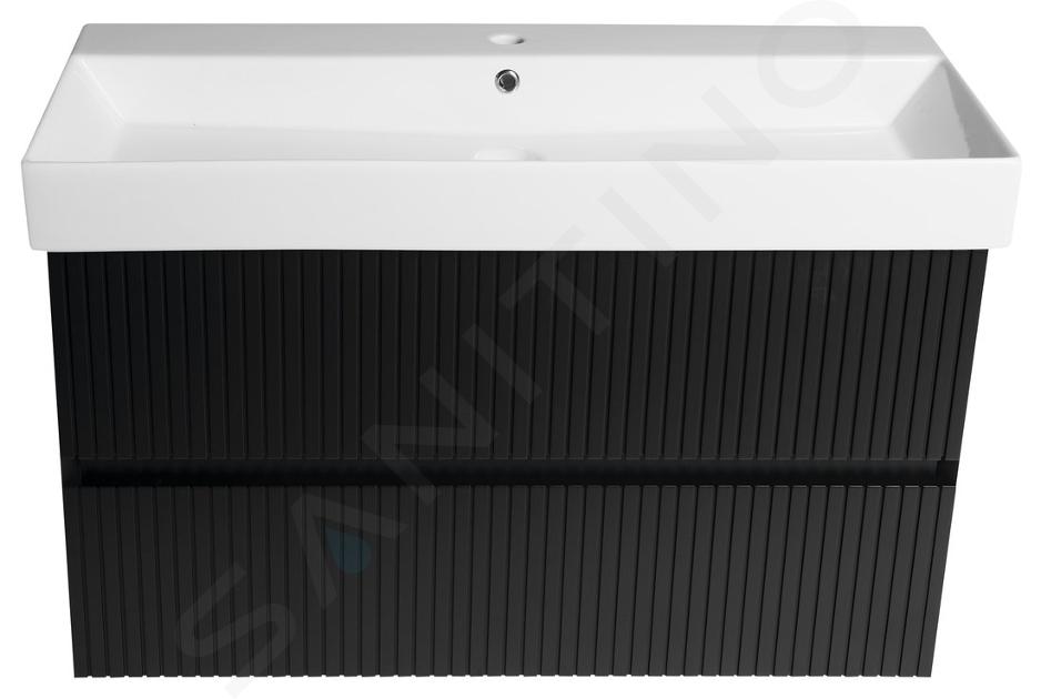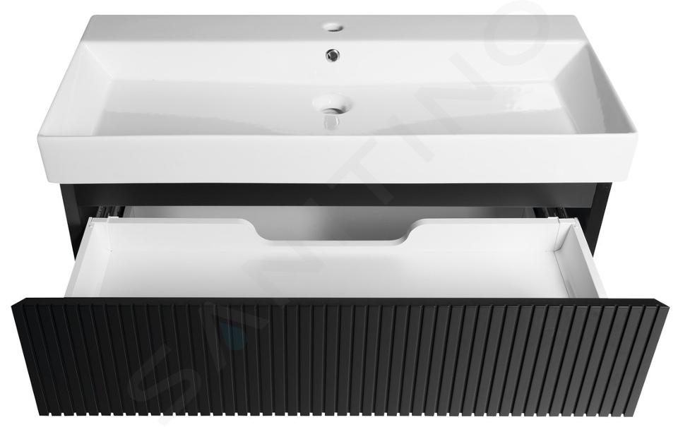 Kast onder de wastafel, 2 lades kleur matzwarte strip materiaal... Volledige omschrijving weergeven.