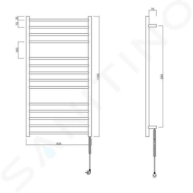 Handdoekdroger kleur chroom materiaal rvs afmetingen 630 x 1160 mm... Volledige omschrijving weergeven.